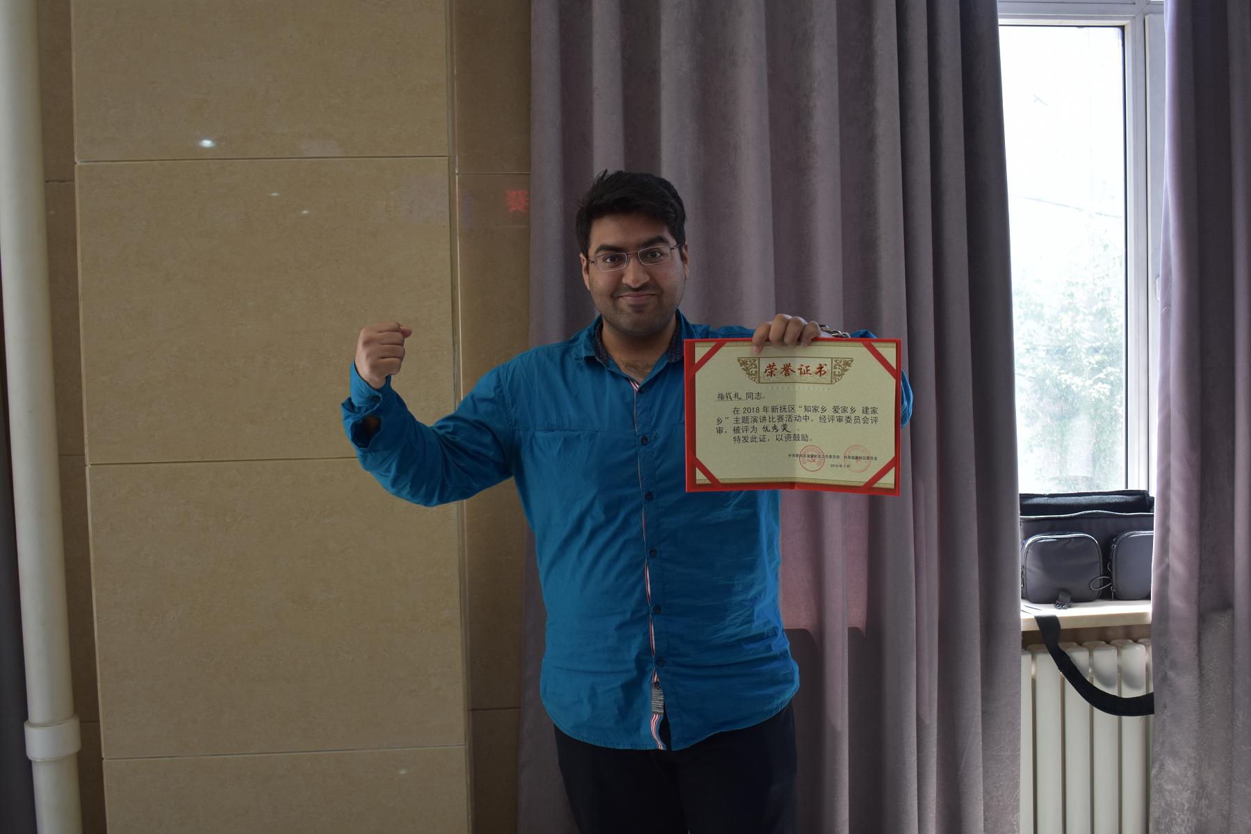 活動得到了全區(qū)機關(guān)、企事業(yè)單位廣大青年職工的積極響應(yīng),我公司選送了實習(xí)員工福載禮,一位來自巴基斯坦的留學(xué)生參加了比賽。經(jīng)過預(yù)賽的激烈角逐,福載禮與其他13名選手從初賽中脫穎而出,進(jìn)入決賽。他們們從不同角度和不同層面闡述了對撫順的熱愛之情。他們用如火的激情表達(dá)投身家鄉(xiāng)建設(shè)的決心;他們用不忘初心的使命踐行新時代新青年的擔(dān)當(dāng)。他們深情地講述一個個生動真實的故事,對“知家鄉(xiāng) 愛家鄉(xiāng) 建家鄉(xiāng)”做出最好的詮釋。他們的精彩演講不時贏得評委和現(xiàn)場觀眾的陣陣掌聲。