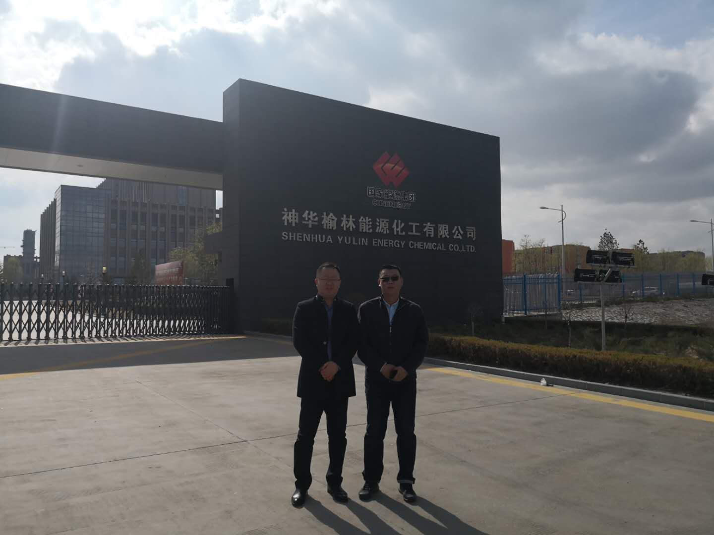公司董事長兼黨委書記趙劍平(左一)李雙龍(右一)項目總監(jiān),視察神華榆林項目部