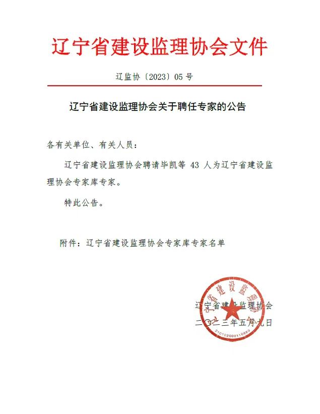 為滿足我省建設(shè)工程監(jiān)理行業(yè)改革發(fā)展需要,省建設(shè)監(jiān)理協(xié)會(huì)決定建立專家?guī)觳⒊闪<椅瘑T會(huì),此次聘請(qǐng)全省專家共計(jì)43人加入專家?guī)。我公司高?jí)工程師黃思敏被聘為資質(zhì)管理(管理類)、土建、水暖(技術(shù)類)專家。此次專家?guī)斓某闪,將充分發(fā)揮行業(yè)專家的作用,加強(qiáng)協(xié)會(huì)技術(shù)力量、為我省監(jiān)理行業(yè)服務(wù),維護(hù)行業(yè)市場(chǎng)各方面的合法權(quán)益。而黃思敏同志也將帶著“誠實(shí)精神、誠實(shí)技術(shù)”為我省監(jiān)理行業(yè)貢獻(xiàn)力量!
