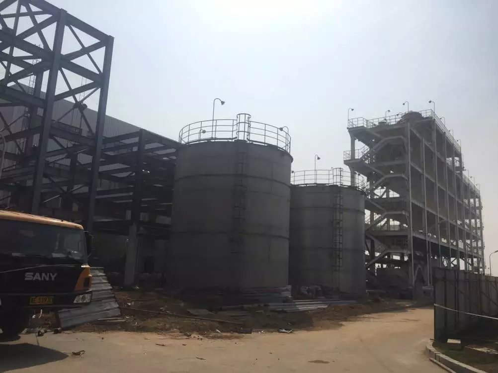 淡鹽水脫氯儲(chǔ)罐、構(gòu)架安裝現(xiàn)場(chǎng)