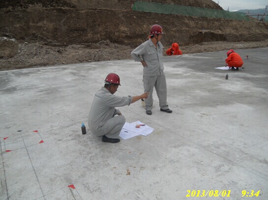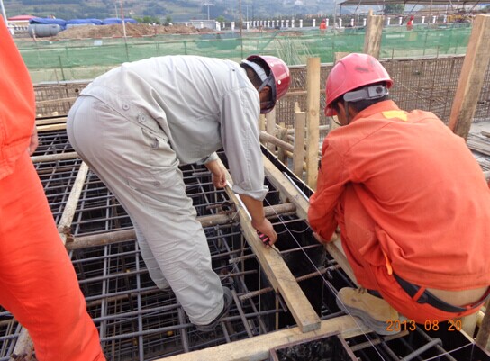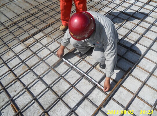 土建監(jiān)理現(xiàn)場檢查壓縮機廠房筏板基礎鋼筋尺寸
