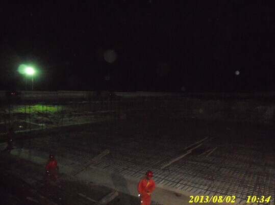 壓縮機廠房基礎環(huán)墻混凝土夜間澆筑施工現(xiàn)場